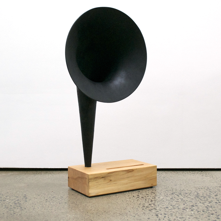 Miller Rubber Co. horns almost always look fantastic – they were made from a hard rubber that has held up well over the eight plus decades they’ve been kicking around. This iVictrola is no exception with a stunning horn and massive Atlantic White Cedar base. Just add your iPad or iPhone!